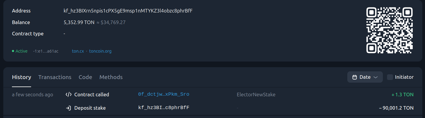 ADD STAKEили отсканируйте QR-код с помощью Tonkeeper или любого другого TON-кошелька. -